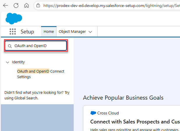 In the Quick Find search box on the left side of the screen, search for and open OAuth and OpenID Connect Settings.