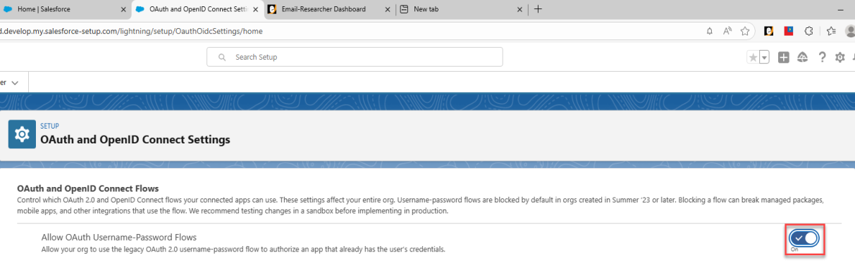 While logging in to Salesforce via Email-Researcher, enter your password followed by the security token you received via email.